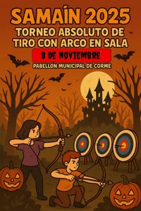 El Club Deportivo Flechas por un Tubo tiene el honor de organizar un Torneo de Tiro con Arco en Sala Absoluto “Samain 2025”, un evento que combina la emoción del tiro con arco con el ambiente enigmático del Samaín. La cita será el próximo 8 de noviembre, en el pabellón municipal de Corme, decorado especialmente para la ocasión.